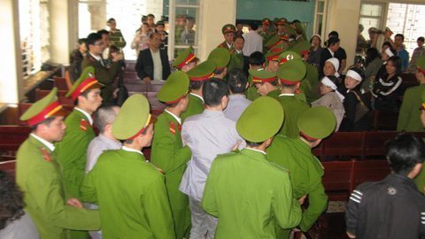| Bị cáo Luyện được bảo vệ chặt chẽ. |