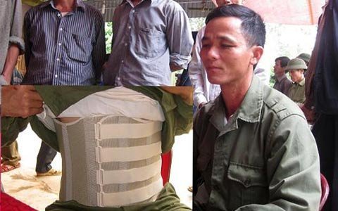 Riêng anh Trung bị dập gãy 2 nhịp cột sống, toàn vùng bụng đang băng bó kín vết thương.
