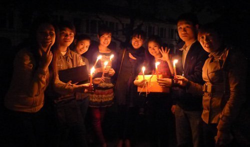 - Đúng 8h30 tối 31/3, khi nghi lễ “tắt đèn” chính thức được thực hiện ở nhiều nơi, các địa điểm nổi tiếng của Hà Nội đã “tắt đèn” trong một giờ đồng hồ để hưởng ứng chiến dịch Giờ Trái đất, kêu gọi bảo vệ hành tinh xanh.