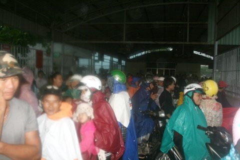 Những người dân này đều cư ngụ bên kia sông thuộc huyện Nhơn Trạch (Đồng Nai) được chuyển đến tạm cư tại trường tiểu học Mỹ Thủy (P.Cát Lái Q.2 TP.HCM). Chính quyền đã cung cấp lương thực và nước uống để bà con tạm qua đêm chờ bão đi qua.