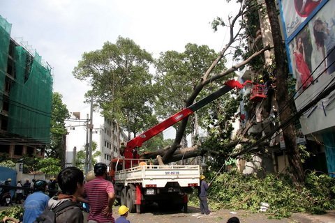 Theo bà Nguyễn Thị Huỳnh Anh - Phó giám đốc công ty TNHH một thành viên công viên cây xanh, toàn thành phố có tất cả 227 cây xanh bị tbật gốc. Nếu tính cả huyện Cần Giờ con số này sẽ được nâng lên 576 cây.