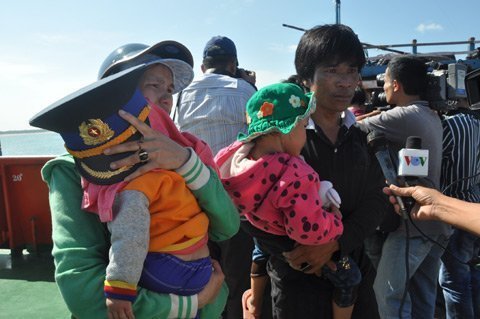 Vợ chồng thuyền viên Phạm Văn Liệu và Phạm Thị Chanh cùng con nhỏ hạnh phúc ngày trở về từ cõi chết.