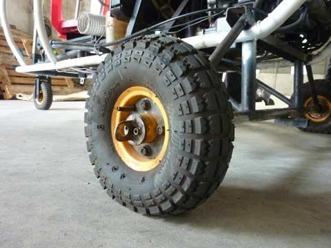 | Bánh của máy bay được “thửa” bằng bánh của xe thồ mua ngoài chợ đồng nát. |