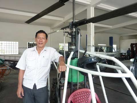 Để làm điều này, ông Hiển đã mày mò trên mạng Internet, tìm hiểu từ nguyên lý hoạt động, các thông số kĩ thuật và lựa chọn các thiết bị có sẵn từ ô tô, mô tô nước…để lắp ráp một “sản phẩm bay” hoàn chỉnh.