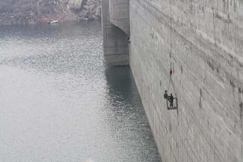 lên thân đập xử lý sự cố rò rỉ nước. Sau khi khoan vô bê tông, họ bảo mình lấy