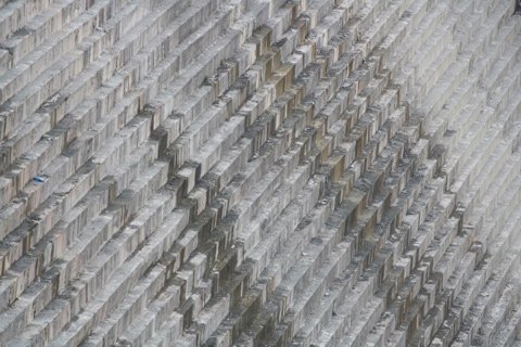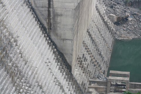 vách núi nhìn xuống đập chính sâu hun hút, mắt tôi không còn nhìn thấy những cột