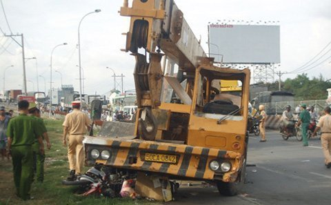 Vào khoảng 15h30 ngày 13/4, chiếc xe cẩu BKS 50L-0842 chạy hướng Bình Chánh – Long An, khi đến dốc cầu Bình Điền thì bất ngờ mất lái, chao đảo rồi tông thẳng và kéo lê 5 chiếc xe máy đang lưu thông trên đường, cán trúng 3 người và làm một số người khác văng ra ngoài.