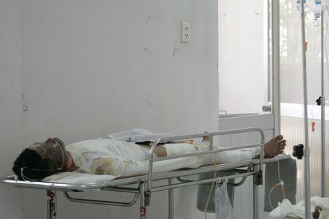 Một nạn nhân trong vụ nổ ga. (Ảnh: Trần Chánh Nghĩa)