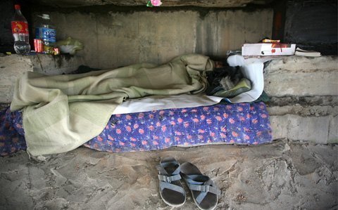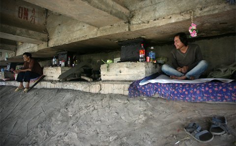 Những khoang nhỏ dưới khe cầu có chiều cao không quá 80 cm và chiều dài chỉ được 1m5, chính vì vậy để ngủ được bắt buộc phải gác chân hoặc nằm chéo đưa chân ra ngoài, ngay cả việc ngồi trong "căn nhà" này cũng phải khom lưng.