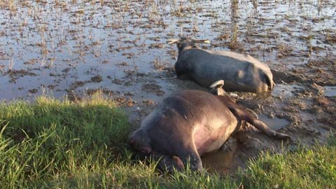 | Một vụ điện giật trước đó tại một cánh đồng huyện Ba Tơ làm nhiều con trâu chết. |