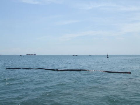 Khu vực Bãi Trước TP Vũng Tàu được giăng phao chống dầu tràn |