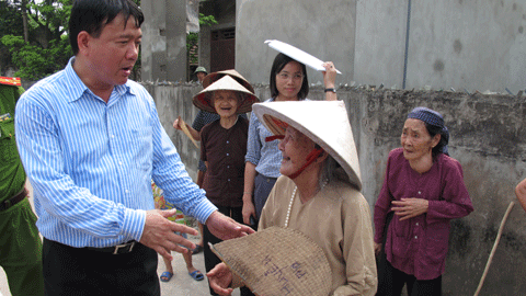 | Bộ trưởng Thăng cám ơn người dân huyện Lý Nhân đã tự nguyện đóng góp để