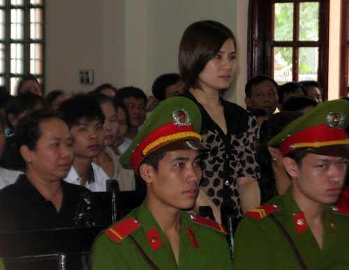 Có mặt từ sớm, chị Lê Thị Lý (SN 1981, quê ở xã Vạn Thắng, huyện Ba Vì, Hà Nội) vợ của bị cáo cũng là nạn nhân của vụ án đi cùng mẹ trong bộ quần áo gọn gàng, gương mặt xinh đẹp vội rơi nước mắt ở ngay những phút đầu diễn ra phiên tòa.