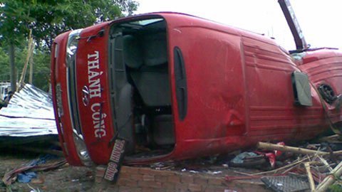 | Ảnh xe khách tông vào quán cà phê (Ảnh: cơ quan CA cung cấp) |