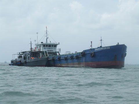 | Tàu chứa dầu được điều động ra hiện trường phục vụ công tác hút dầu từ