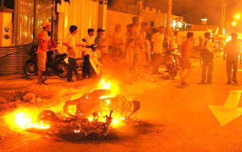 15 phút sau công an và dân phòng có mặt nhưng trên tay mỗi người chỉ có duy nhất... cây gậy.