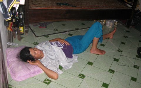 | Bà Trương Thị Nga nằm bệt dưới nên nhà, nói những lời thảm thương gọi chồng con. |