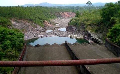 Hố nước ngay dưới chân đập tràn sự hồ Kẻ Gỗ - nơi phát hiện thịt bò trôi nổi |