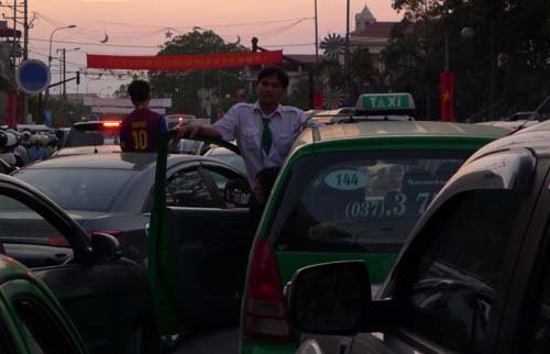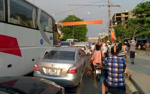 Tắc đường kéo dài 4 - 5 tiếng đồng hồ nhưng không có bóng dáng của cảnh sát giao thông, có chăng cũng chỉ là mấy bác dân phòng ra thổi còi nhưng chỉ giải quyết được phần nào ùn tắc. Người dân xã Quảng Vinh đành chỉ lối cho du khách đi tắt vào làng, đi qua cánh đồng để về thành phố Thanh Hóa khi trời đã nhá nhem tối.