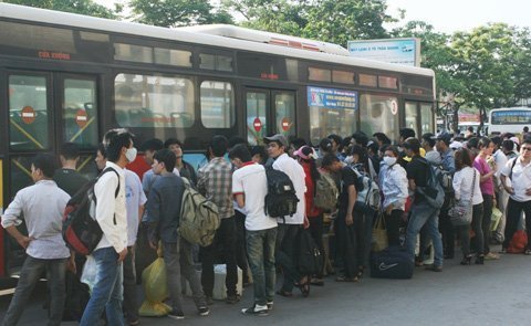Nhiều tuyến xe buýt dù đã tăng cường với 5 phút lại có một chuyến, nhưng do quá đông nên tại các điểm dừng đón trả khách xe buýt chỉ mở cửa xuống rồi lại vọt đi luôn.