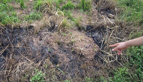 Hiện trường nơi cô gái trẻ dùng xăng tự thiêu (Ảnh: Bee.net.vn)