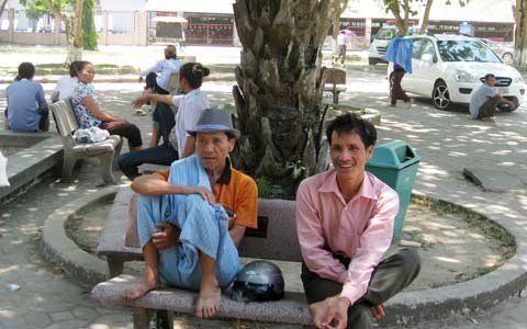 | Rất nhiều bệnh nhân, người nhà không thể nằm trong giường bệnh vào giờ nắng nóng cao điểm đã phải ra ngồi ghế đá trong bệnh viện để hóng mát. |