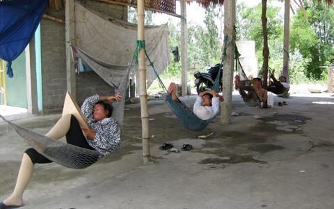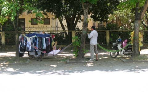 | Người dân mắc võng nghỉ trưa tránh nóng. |