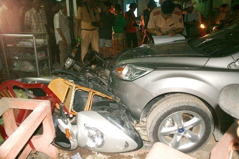 Bà Trịnh Thị Cảnh (59 tuổi) chủ tiệm, nét mặt chưa hết bàng hoàng thuật lại: “Tôi đang cùng đứa cháu nhỏ bán hàng cho khách. Một tiếng va chạm mạnh vang lên kèm theo những tiếng kêu cứu thất thanh, tôi nhìn lại, chiếc xe du lịch đang đẩy 3 xe gắn máy hướng vào tiệm. Tôi kéo vội đứa cháu chạy nhanh vào bên trong thoát nạn. Nhìn lại, đầu xe cách chỗ bà cháu tôi đứng chỉ đúng hai gang tay”.
