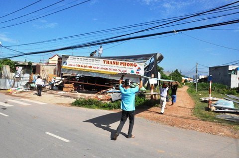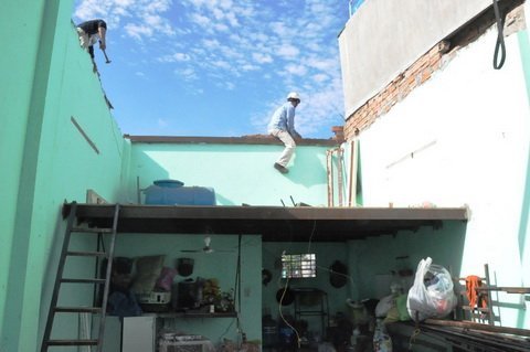 Bà con người dọn dẹp, người lợp lại mái, người xây lại nhà. Nhiều xe chở vật liệu xây dựng ra vào tấp nập. Mọi người làm việc hết sức khẩn trương bởi thời tiết đang vào mùa mưa. Những cơn mưa giông luôn là mối đe dọa đối với những căn hộ cấp 4 và nhà tạm.
