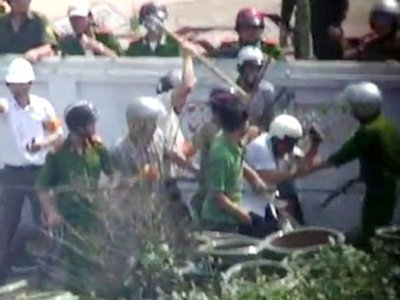| Người bị đánh trong ảnh được xác nhận là 2 PV của VOV. (ẢNh: NLĐ). |