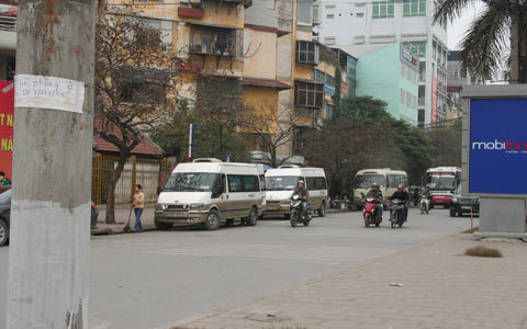 Dọc theo tuyến đường Giải Phóng (từ ngã ba Kim Đồng xuống tới Ngã ba Pháp Vân), tình trạng xe bắt khách dọc đường vẫn diễn ra, bất chấp có khá đông lực lượng CSGT đứng điều hành trật tự giao thông.