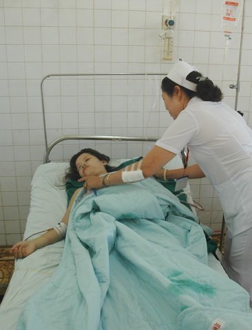 | Chị Đinh Thị Anh Thủy, mê man trên giường bệnh |