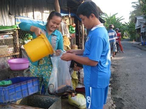 Đến chiều tối cùng ngày, có rất nhiều người dân đi mua tôm cá, lươn chỉ đến muốn nhìn xem con lươn “khủng” mà chủ nhân đang nuôi giữ.