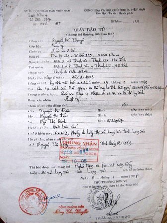 | Giấy báo tử và giấy xác nhận, đề nghị công nhận liệt sỹ mà Sư đoàn 337 đã nhiều lần gửi các cơ quan từ TƯ đến địa phương nhưng vẫn chưa giải quyết được. |