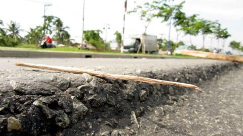 Mặt đường Đại lộ Đông tây thuộc địa bàn quận 2 hiện đang bị sụt lún nghiêm trọng sau nửa năm thông xe.