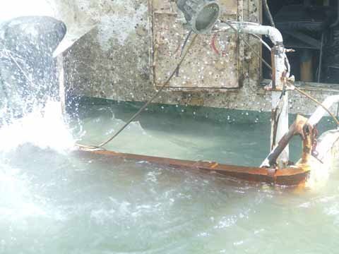 Do “ngủ” dưới đáy biển hơn một tháng nên cabin tàu Trường Hải Star bị hư hỏng khá nặng và bị rong rêu, hào biển bám dày đặc.