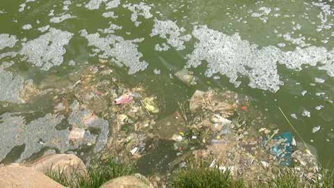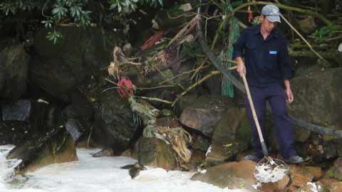 | Nguyên nhân của tình trạng này là do nguồn rác thải từ các khu dân cư phía trên thượng nguồn đổ về |