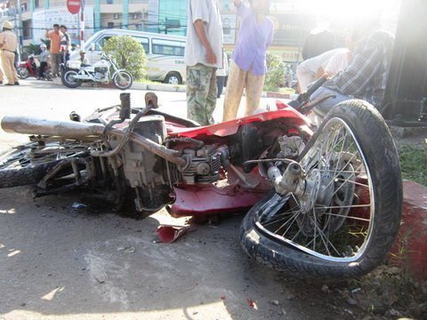 ![]() Một trong 3 xe gắn máy bị hư hỏng nặng. ![]() |