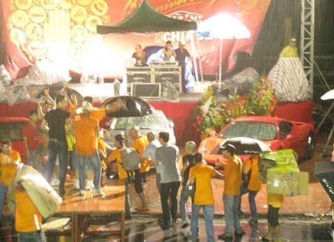 | Bất chấp trời mưa, các thành viên diễn đàn vẫn phấn khích nhảy múa |