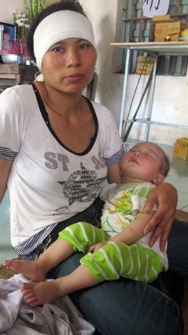 Cháu Hưng mắc bệnh u máu bẩm sinh và bệnh hen phế quản, đang điều trị tại Viện Nhi TW. Từ ngày có cháu, chị phải nghỉ hẳn việc chợ búa vì con thường xuyên đau ốm. Đã vậy, mẹ chồng chị 83 tuổi đổ bệnh tim, nằm liệt giường, chị phải thuê thêm người chăm sóc.
