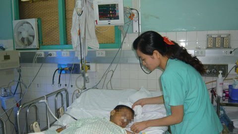 | Bé Hoàng Anh đang nằm điều trị tại BV Nhi đồng 2 |