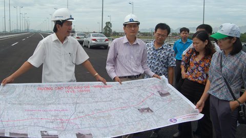 | Đại diện VEC đang chỉ dẫn những đoạn đường chậm tiến độ do khó khăn trong giải phóng mặt bằng. |