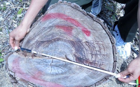 | Một gốc cây có đường kính lớn bị triệt hạ tại rừng Khe Bọt. |
