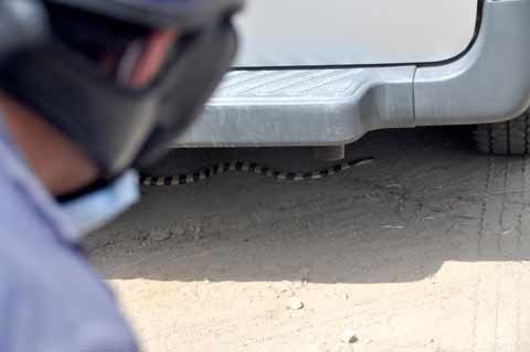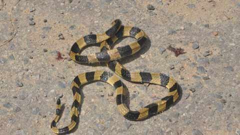 | Một con rắn bị đánh chết sau khi thoát ra ngoài. Đây là loài Cạp Nong cực độc, nếu bị cắn có thể tử vong trong vòng vài phút |