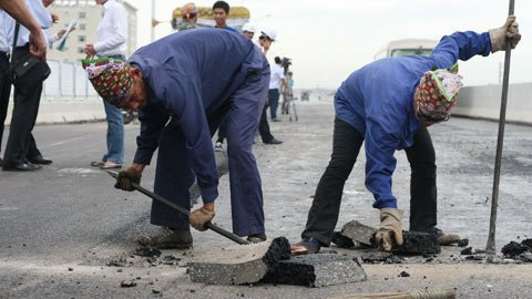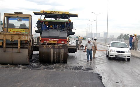 ![]() ![]() Những mét thảm bê tông nhựa cuối cùng đang được các công nhân của nhà thầu gấp rút hoàn thiện. |