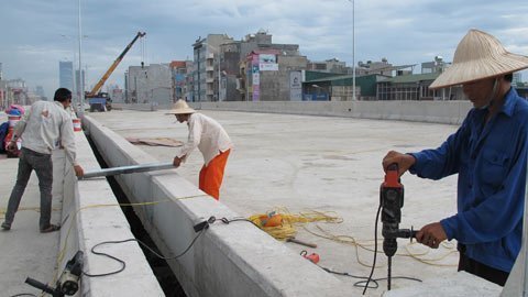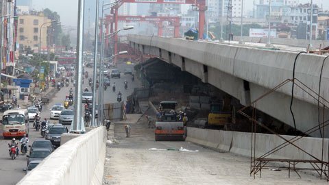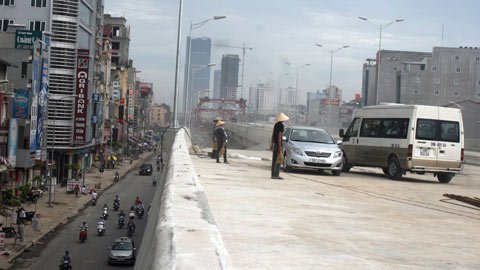 ![]() Đoạn cầu cạn rẽ xuống Ngã tư Nguyễn Trãi - Khuất Duy Tiến đang được gấp rút hoàn thành. |