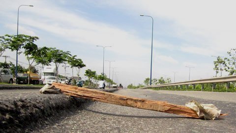 Đại lộ Đông Tây trước khi sửa chữa lần thứ 3 vì sụt lún, trồi nhựa. Có đoạn gồ lên gần 10cm.