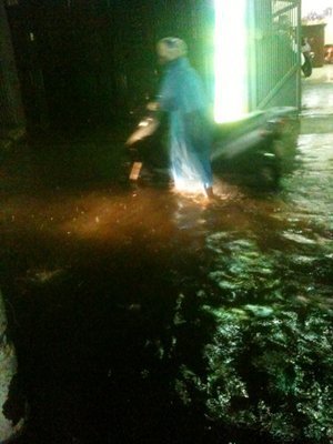 Đến khoảng gần 5g chiều, trận mưa lớn bắt đầu trút xuống. Trận mưa xối xả kéo dài đến gần 7 giờ tối khiến nhiều tuyến phố như Tây Sơn, Núi Trúc, Nguyễn Khuyến, Phan Bội Châu, Lý Thường Kiệt, Thái Thịnh, … ngập úng. Đặc biệt ở phố Núi Trúc, chị Lê – người đi làm về qua phố này – cho biết nước ngập lên tới tận đầu gối khiến rất nhiều xe máy bị chết máy.