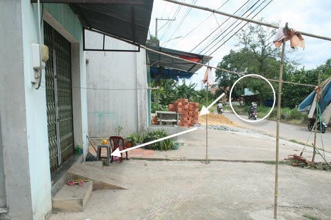 Từ nhà Mạnh nhìn sang bên kia đường là công trình xây dựng đang thi công. Chính nơi đây, Mạnh đã lấy cây cuốc của nhóm thợ đang làm việc.