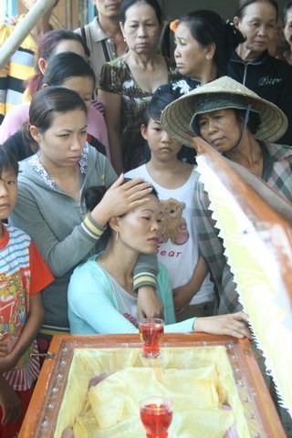 | Chị Thu Hà ngất bên quan tài 2 con |